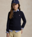 Polo Ralph Lauren cable crewneck girls sweater navy met wit paardje