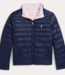 Polo Ralph Lauren unisex donsjack roze/navy, reversible dus aan 2 kanten te dragen.