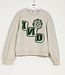 INDEE crewneck college sweater TATTOO grijs met groene flockprint. Style je outfit met deze stoere vintage look sweater