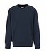 CP Company basic sweater met ronde hals en lens op de mouw in kleur total eclipse (heel donkerblauw)